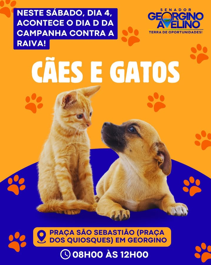 Acontece o Dia D da Campanha contra a Raiva, com vacinação para cães e gatos.