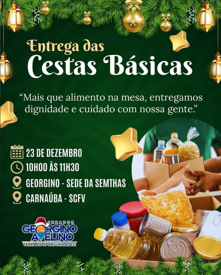 A Prefeitura Municipal de Senador Georgino Avelino realizará nesta terça-feira (23) a entrega de cestas básicas às famílias em situação de vulnerabilidade social, cadastradas para receber os benefícios emergenciais na Secretaria Municipal de Trabalho, Habitação e Assistência Social.