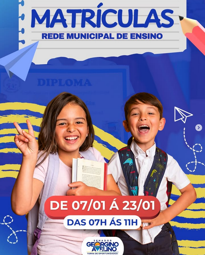 A Prefeitura de Senador Georgino Avelino informa que estão abertas as matrículas da rede municipal de ensino.