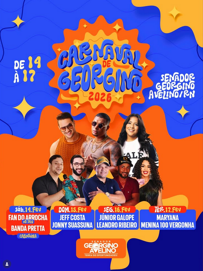Atenção, foliões! A programação do Carnaval de Georgino 2026 já tá no ar!
