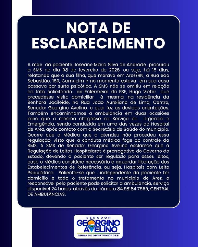 Reafirmamos que a Secretaria Municipal de Saúde não se omitiu e permanece à disposição da população, prestando assistência dentro de suas atribuições legais.