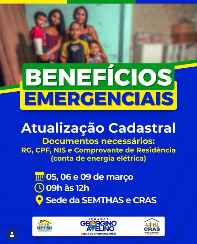 Durante os dias 05, 06 e 09 de março, a equipe da Secretaria Municipal de Trabalho, Habitação e Assistência Social estará realizando a atualização cadastral dos benefícios emergenciais.