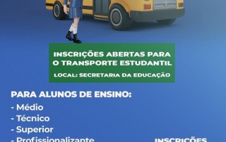 Os alunos que pretendem utilizar o ônibus escolar no turno da noite devem se inscrever através do link disponível na bio do nosso Instagram ou presencialmente na Secretaria Municipal de Educação.