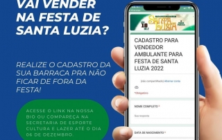 A Prefeitura Municipal de Senador Georgino Avelino, solicita que os vendedores ambulantes que pretendem comercializar dentro dos limites destinados a festa da padroeira de Carnaúba (Santa Luzia), no próximo dia 10/12, façam o cadastro através do link disponível no nosso perfil do Instagram ou compareça na sede da secretaria […]