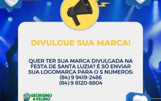 Quer ter sua marca divulgada da festa de Santa Luzia? Mande sua logo para um dos seguintes contatos: Emerson (84) 99419-2486 ou Lidiany (84) 98120-8804