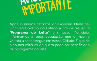 Após o período de dois anos sem nosso Município ser beneficiado pelo programa do leite ,é com imensa satisfação que comunicamos a toda população que após inúmeras tentativas de articulação junto ao governo do Estado e ao esforço contínuo da gestão municipal, enfim recebemos a notícia do retorno do […]