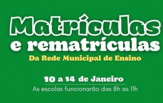A Prefeitura Municipal de Senador Georgino Avelino, através da Secretaria Municipal de Educação irá iniciar as matrículas da rede municipal de ensino.As matrículas serão feitas em todas as instituições de ensino do dia 10 ao dia 14 de Janeiro, das 08:00 ás 11:00 e das 13:00 ás 16:00h.O responsável […]
