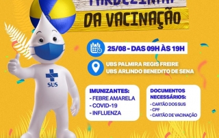 A prefeitura municipal realizará nesta sexta-feira (25) a Tardezinha da Vacinação, a ação ocorrerá nas Unidades Básicas de Saúde do município.